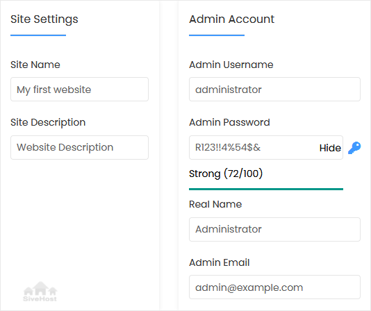 • Site Name: Enter the name of your website, such as my first website.